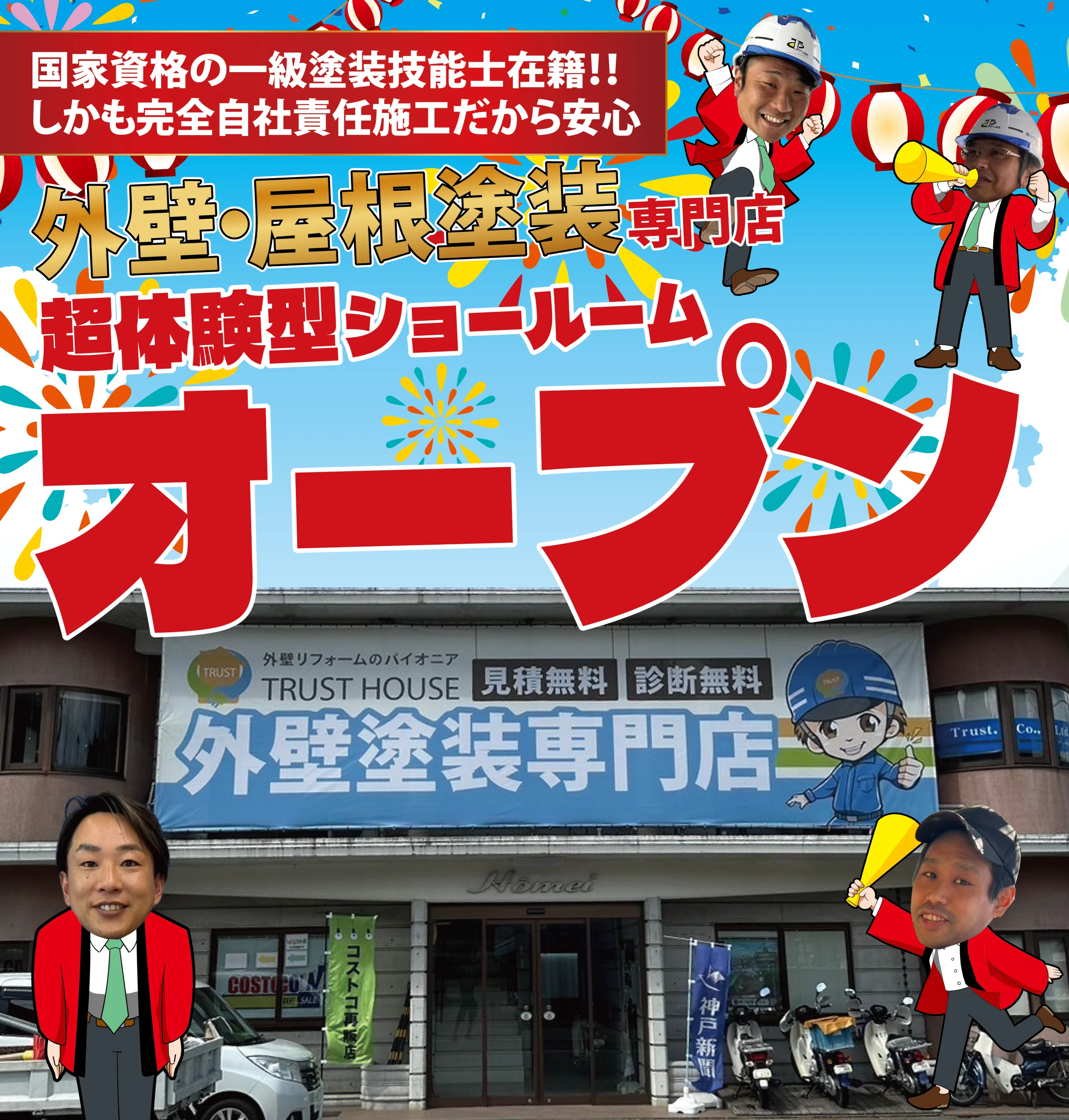 丹波篠山市・丹波市・三田市・能勢市を中心に関西全域で活動しているトラストハウスは、完全自社施工の外壁・屋根塗装専門店です。