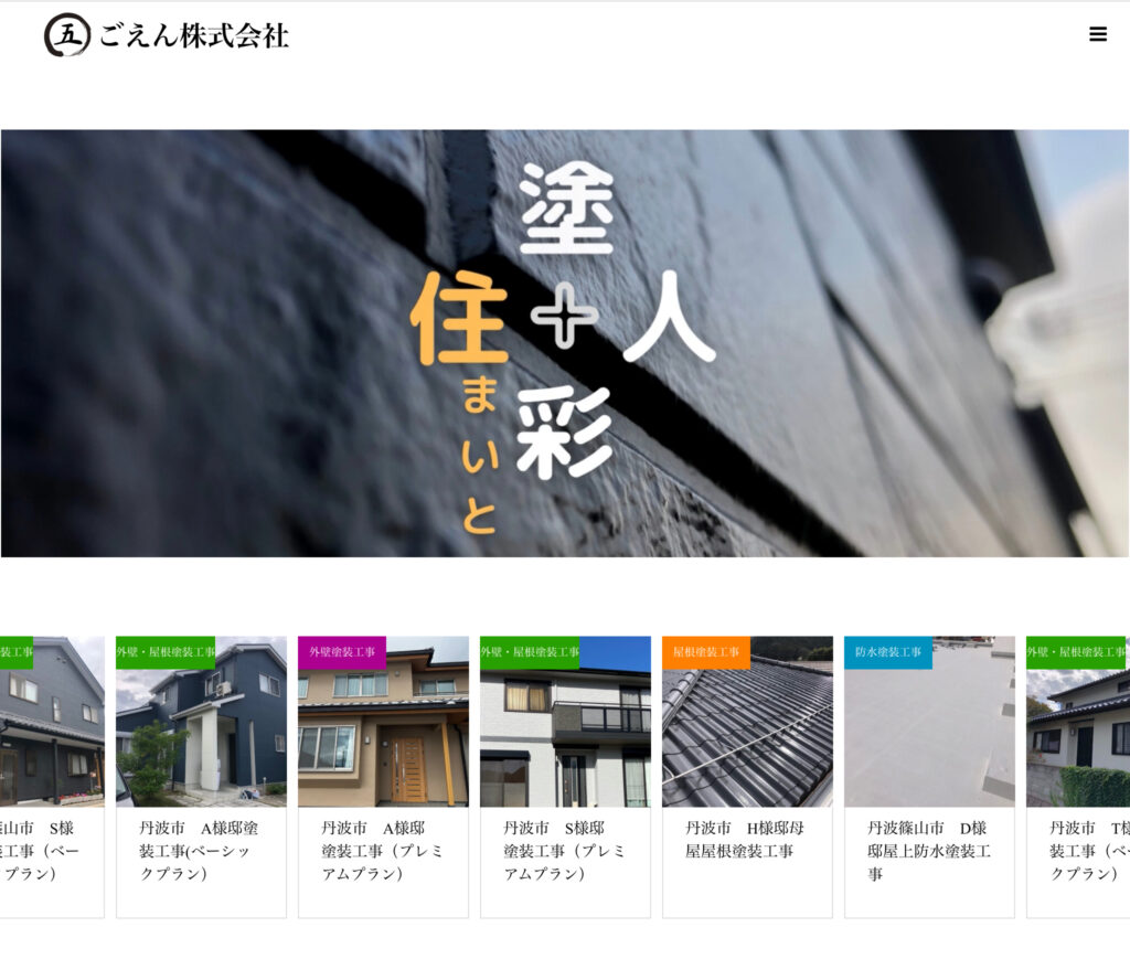 「ごえん塗装」は、外壁塗装・屋根塗装・防水工事を中心に、地域密着で丁寧な施工を提供する塗装専門店です。丹波市内の戸建て住宅やアパート、店舗など、幅広い建物の塗装実績があり、施工の仕上がりや対応の丁寧さから、多くのお客様に高い評価を受けています。