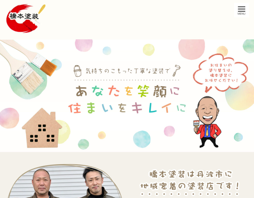 橋本塗装は、丹波市を中心に住宅や店舗の外壁塗装・屋根塗装・防水工事を手がける職人直営の塗装専門店。
