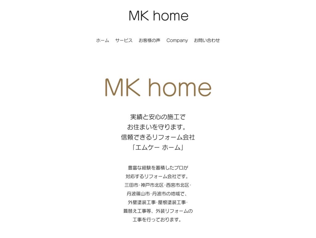 「MK Home」は、外壁塗装・屋根塗装・防水工事を中心に、地域密着で丁寧な施工を提供する塗装専門店です。三田市内の戸建て住宅やアパート、店舗など、幅広い建物の施工実績が豊富で、仕上がりの美しさと対応の丁寧さから、多くのお客様に高い評価を受けています。