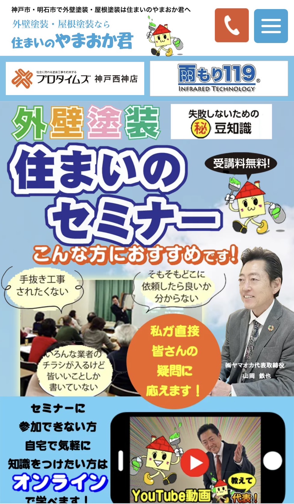 住まいのやまおか君は、プロタイムズ加盟店として安定した施工品質と丁寧な対応が魅力の塗装店です。施工前の現地調査では、建物の状態を詳細に確認し、劣化箇所や施工方法を分かりやすく提案。初めて外壁塗装を依頼する方でも安心して工事を進められる体制を整えています。
