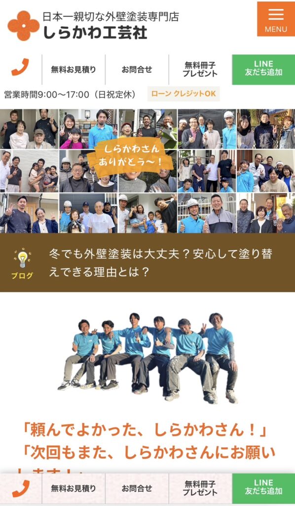 - ホームページなどに「自社施工」と明記されているかをチェックしましょう。
