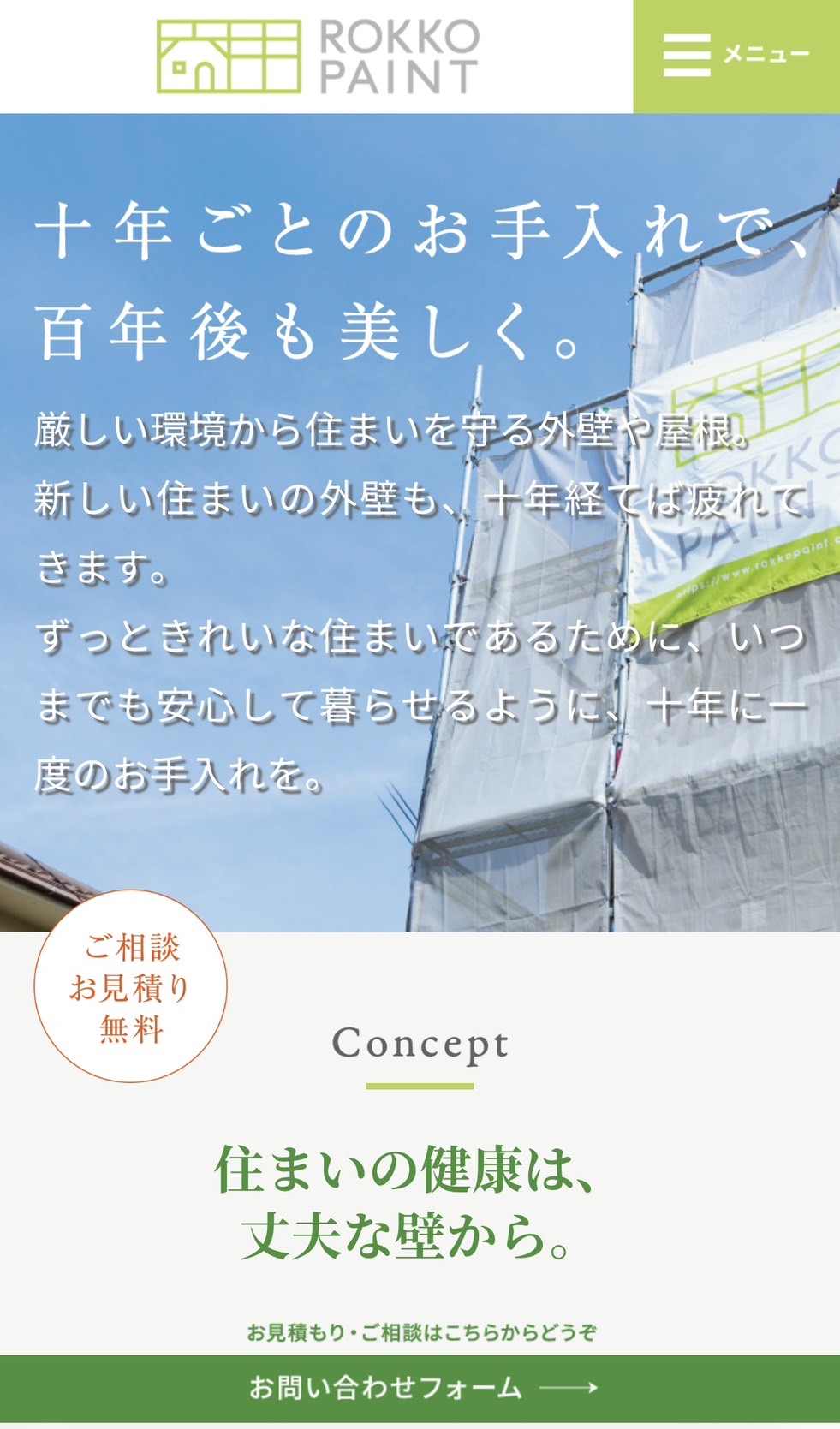 六甲ペイントは神戸市を拠点に、住宅・店舗・ビルなど幅広い建物の塗装を手掛ける会社です。施工前には現地調査を行い、建物の劣化状況や素材に合わせた最適な塗料と施工方法を提案。お客様が納得して工事を進められるよう丁寧に説明してくれます。