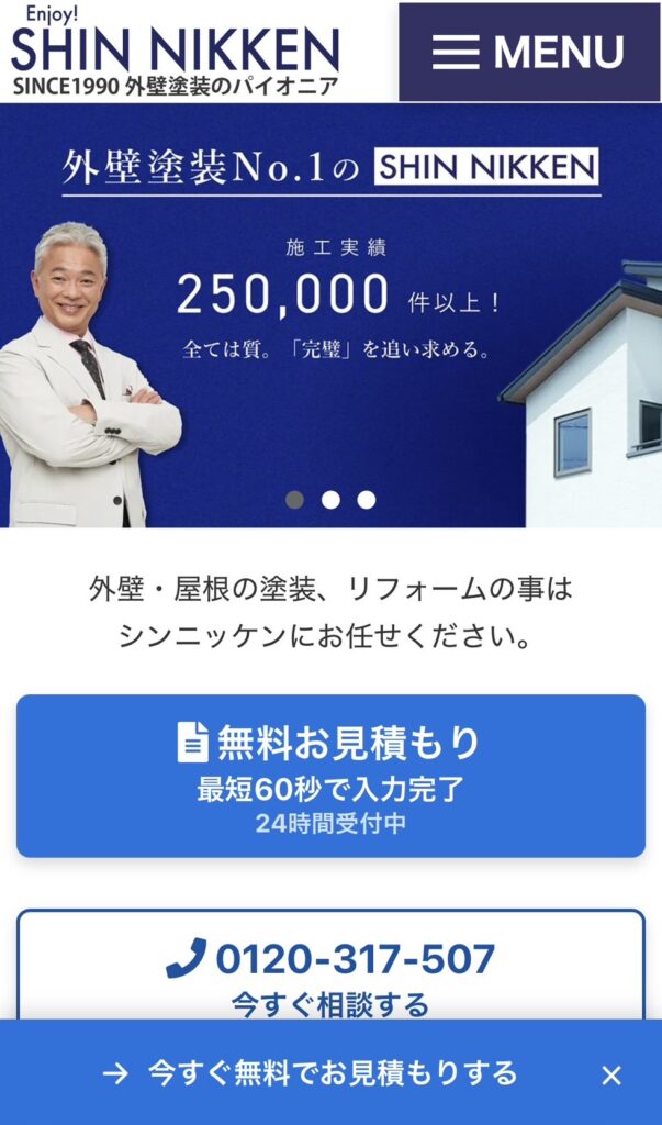 | 営業時間 | 平日8:30~18:00 | 対応品目 | 外壁・屋根塗装、内装工事 |