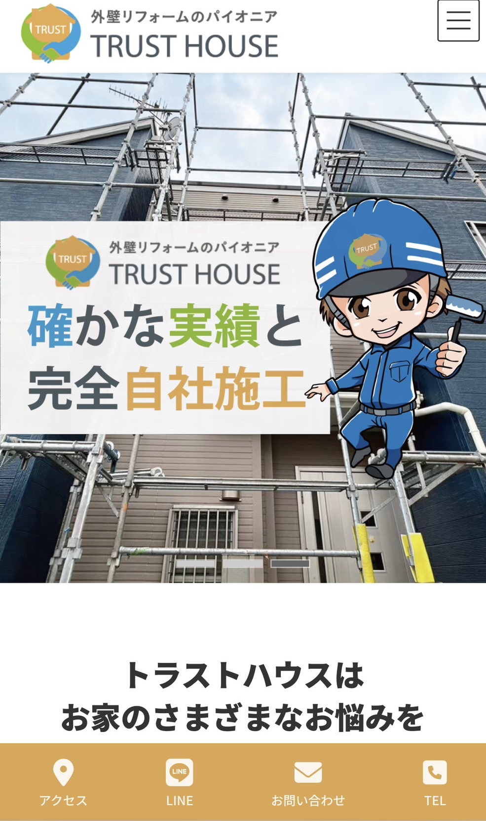 三田市で外壁塗装を検討するなら、まず候補に入れるべき会社がトラストハウスです。地域密着で15年以上の施工実績を誇り、戸建て住宅からアパート・店舗まで幅広く対応しています。施工前には現地調査を行い、建物の劣化状況を丁寧に確認したうえで、使用する塗料や施工方法の選定、工期の目安などを分かりやすく提案。お客様が納得した上で施工を開始するため、初めての塗装でも安心です。