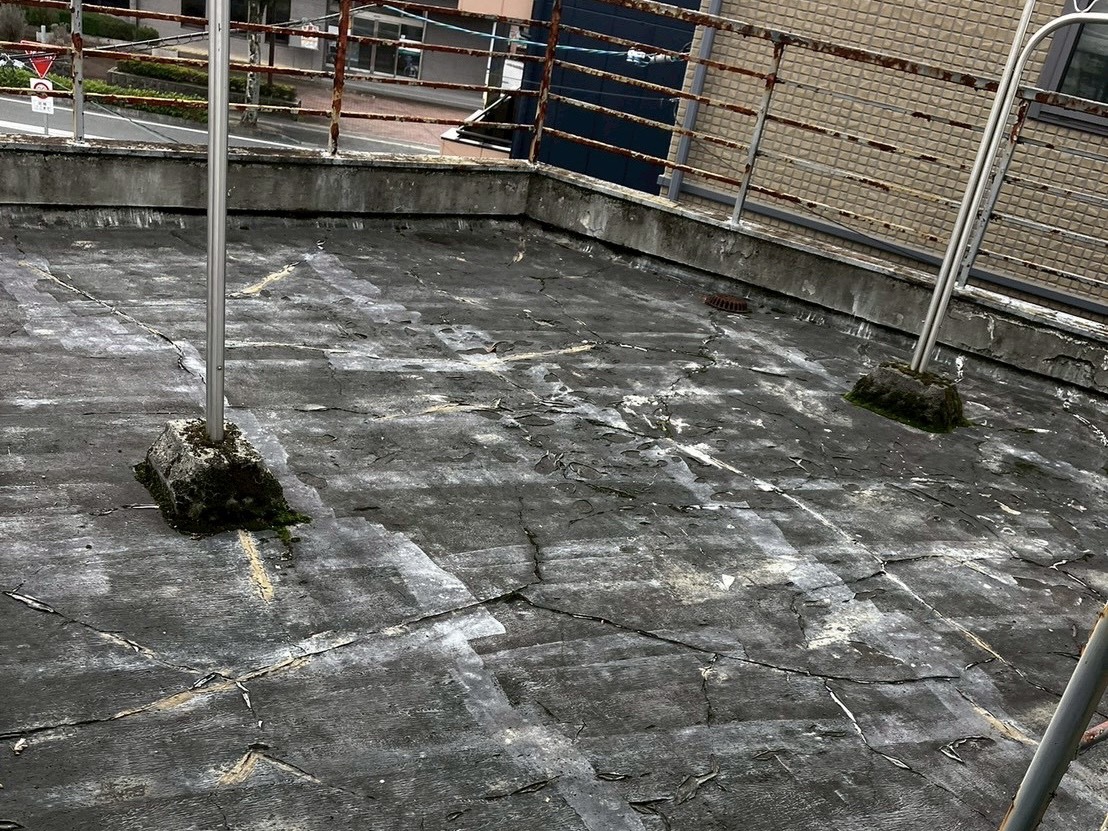 アスファルトを含んだシートを重ねて防水層を作る工法です。