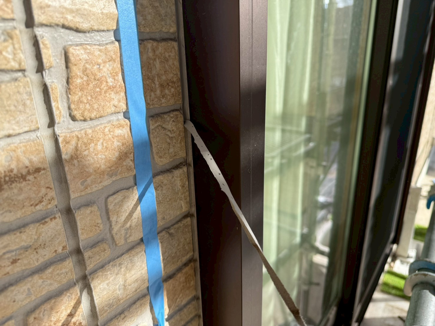 → 壁やサッシの境目をきれいに仕上げるため、マスキングテープを使用します。