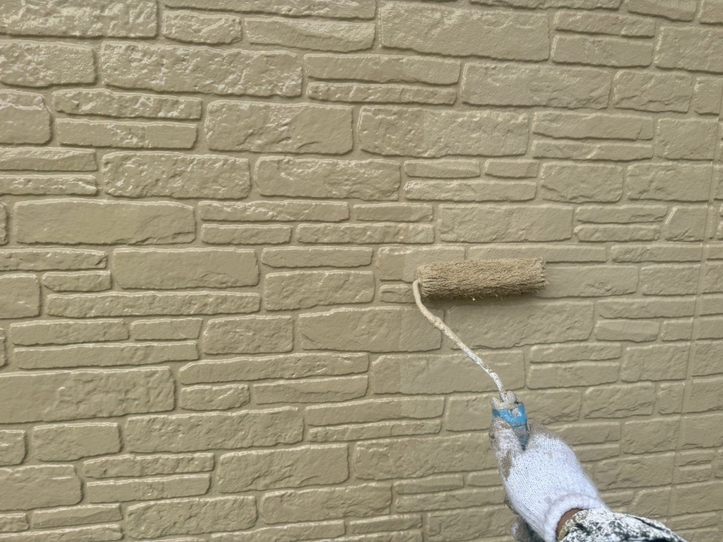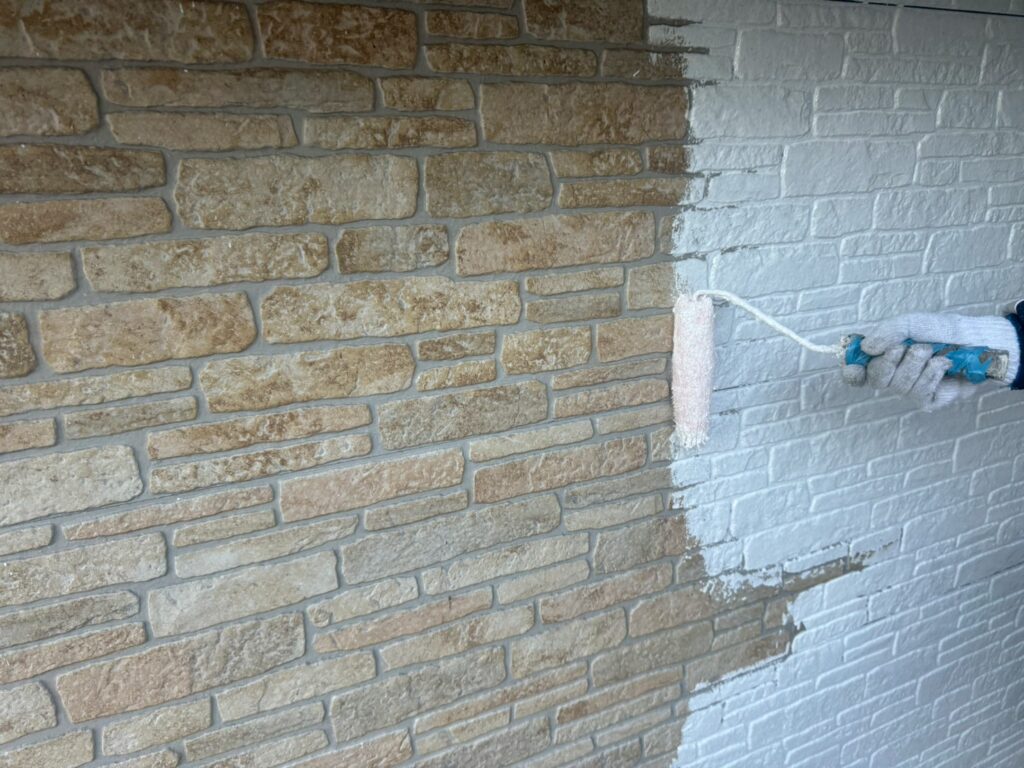 下塗り → 外壁部分の土台にもなり下地と、仕上げの中塗り・上塗りを密着させる接着剤のような役割があります