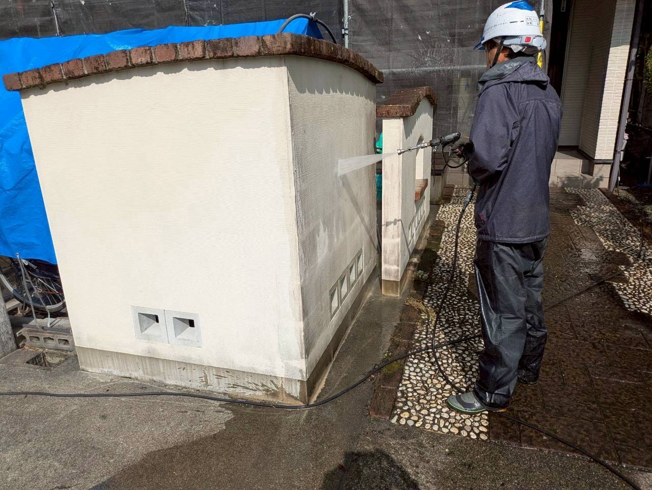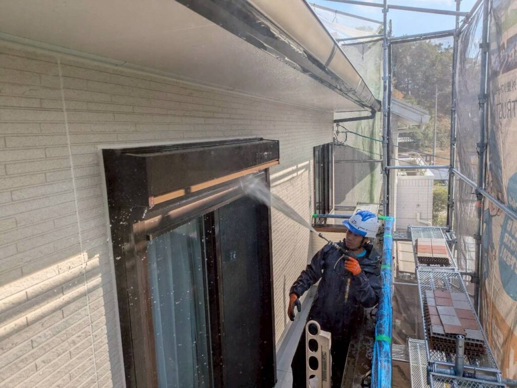 外壁・屋根はもちろん、軒天、窓際、室外機など隅々まで洗浄します🚿