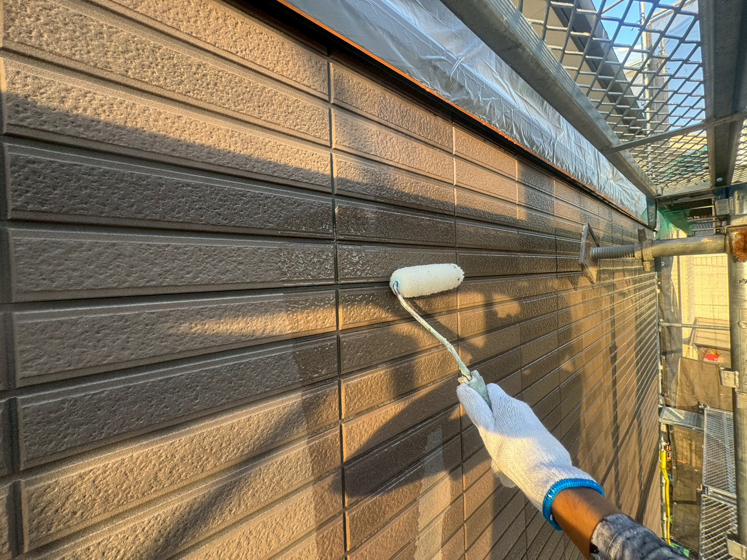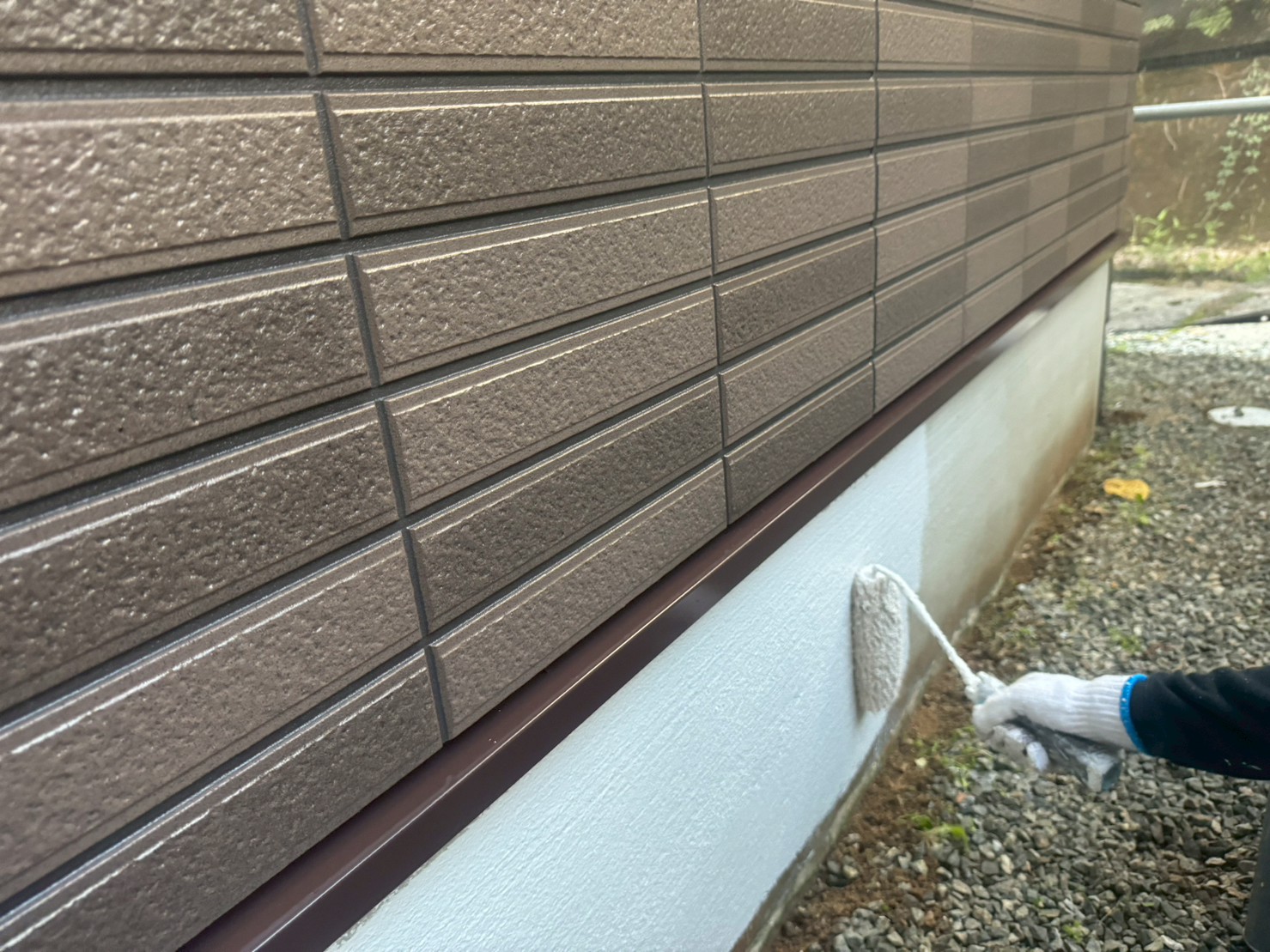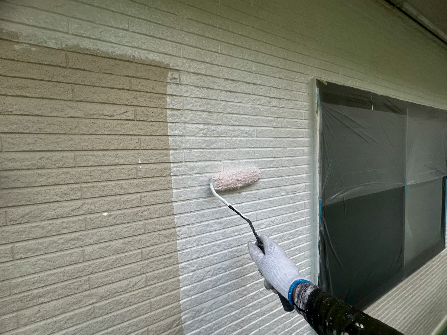 下塗り → 外壁部分の土台にもなり下地と、仕上げの中塗り・上塗りを密着させる接着剤のような役割があります