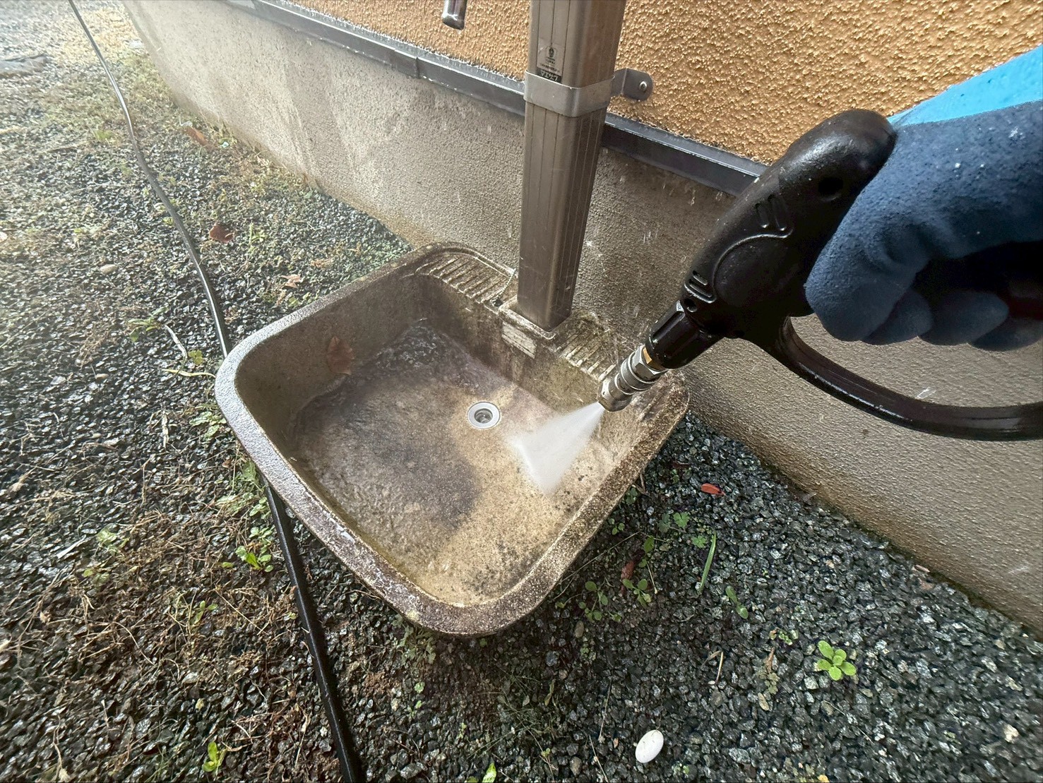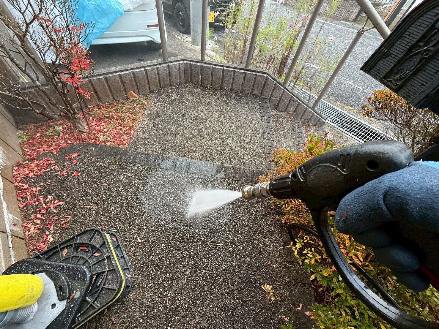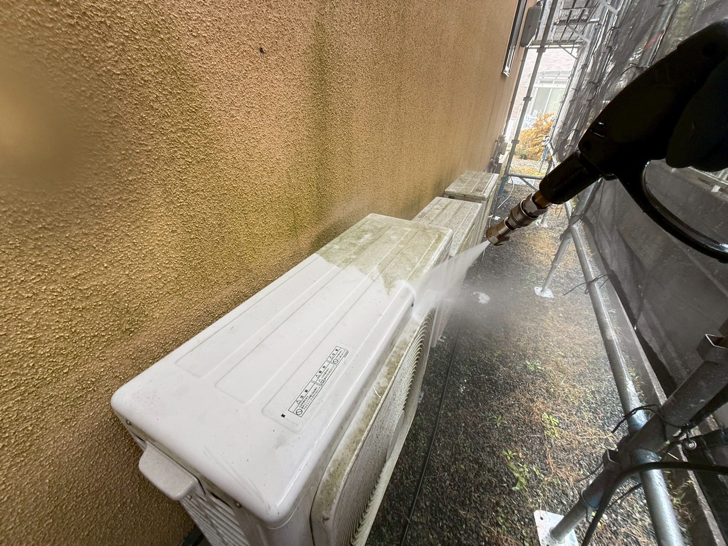 外壁・屋根はもちろん、軒天、窓際、室外機など隅々まで洗浄します🚿