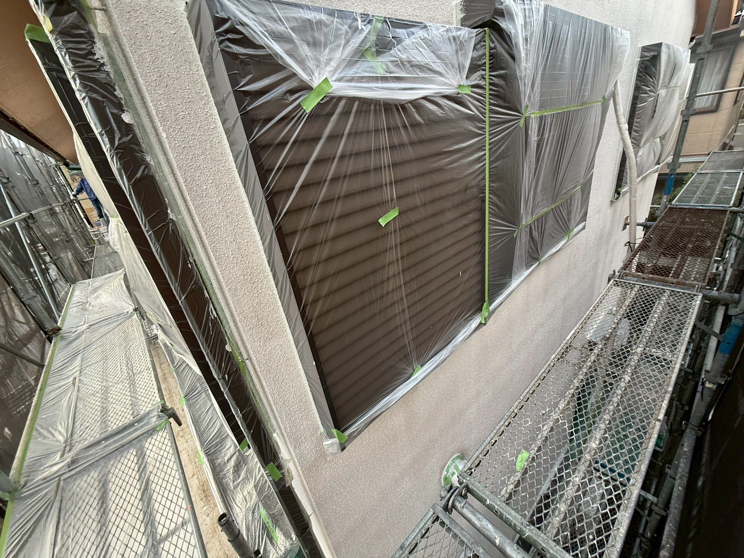 特に外壁塗装では、塗装しない部分や周囲の環境を守るためにビニールシートやマスキングテープ、ブルーシートなどを使って丁寧にカバーすることが重要です。