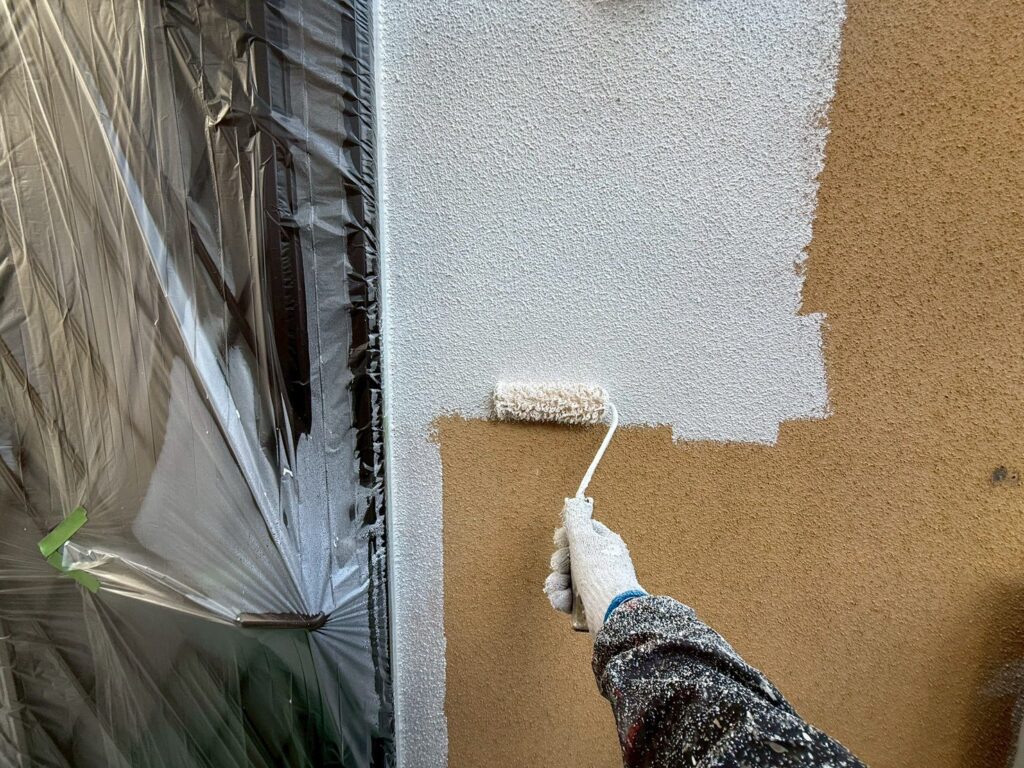 下塗り → 外壁部分の土台にもなり下地と、仕上げの中塗り・上塗りを密着させる接着剤のような役割があります