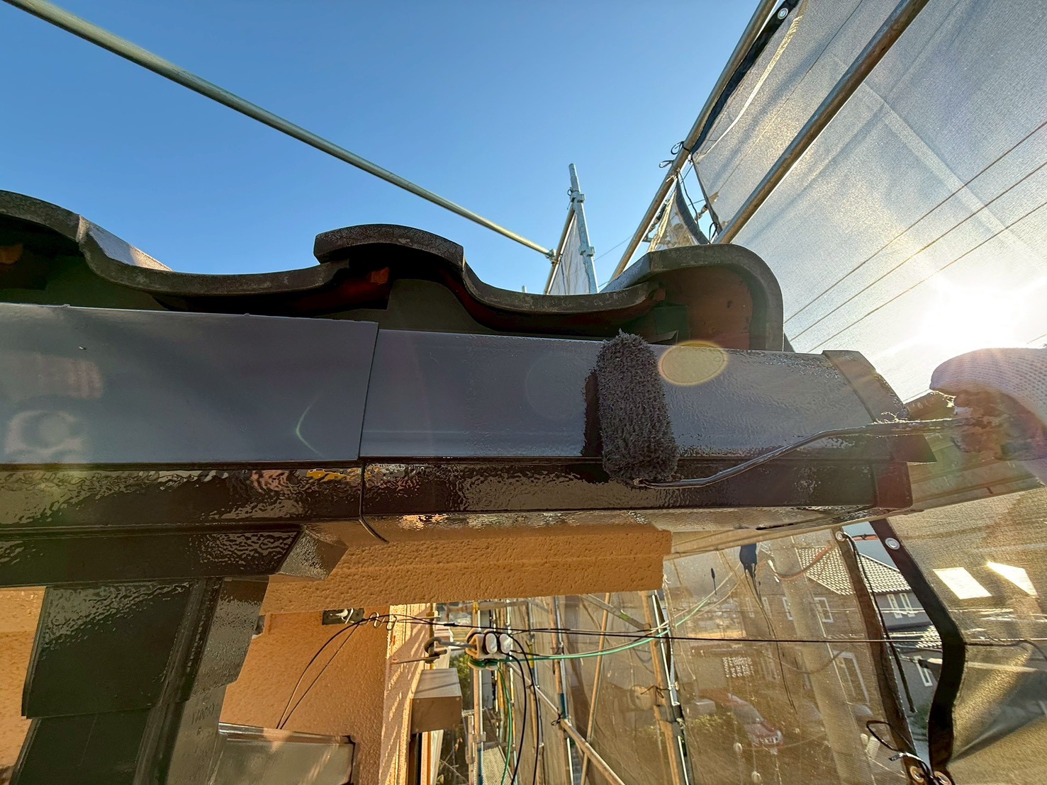 - 次に細かい部分(雨どい・板金・鉄部など)を塗る