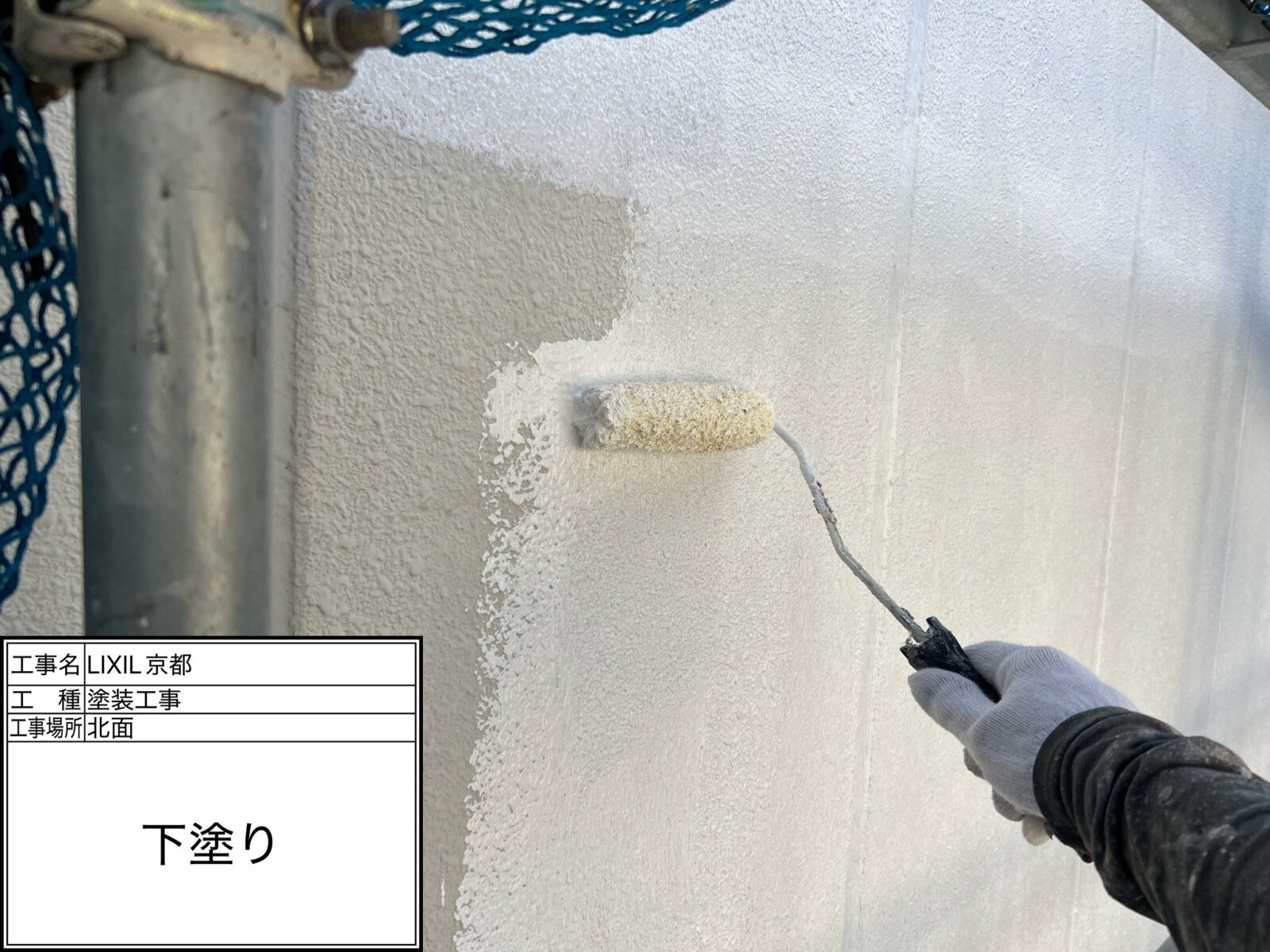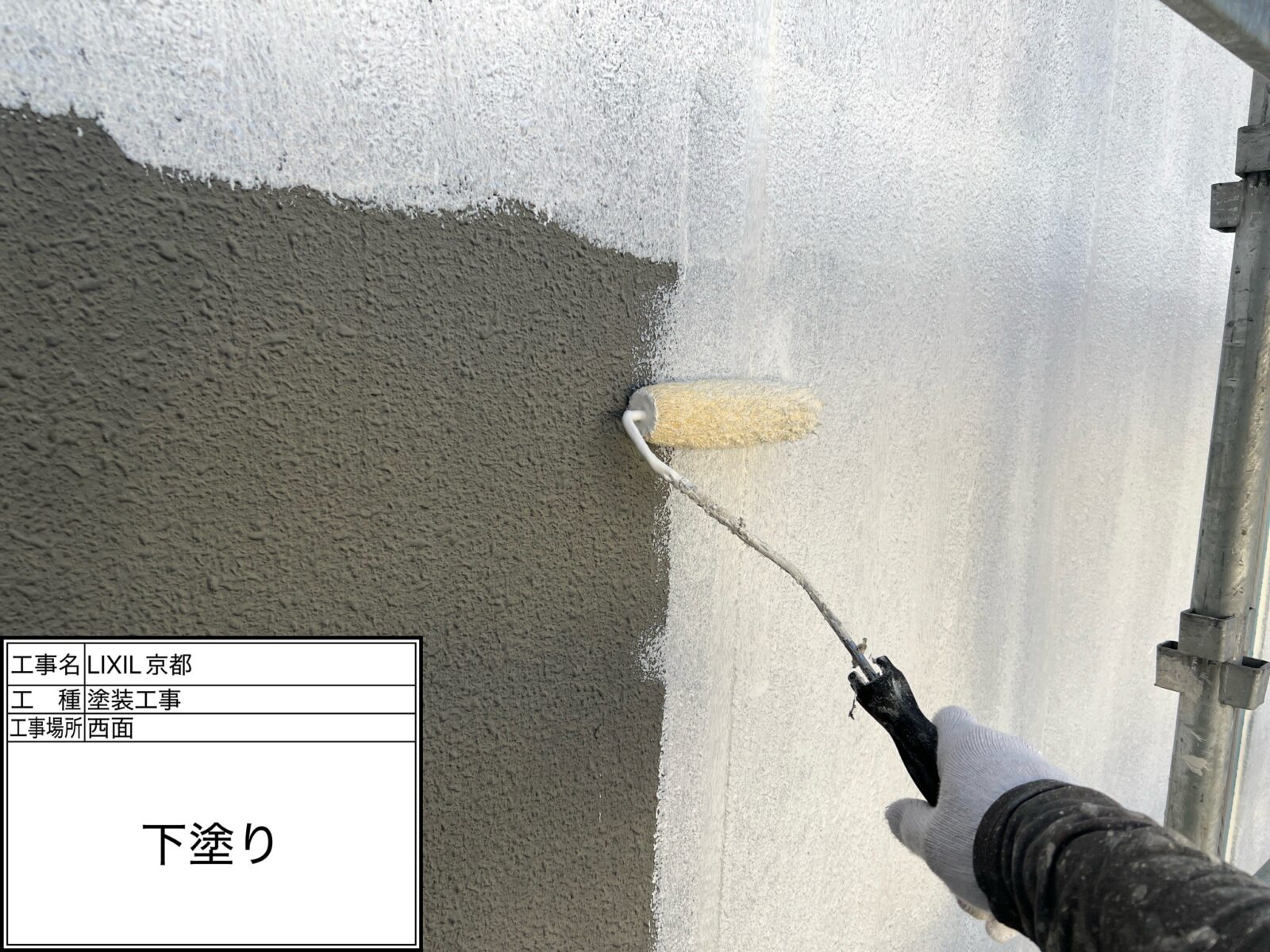 下塗り → 外壁部分の土台にもなり下地と、仕上げの中塗り・上塗りを密着させる接着剤のような役割があります