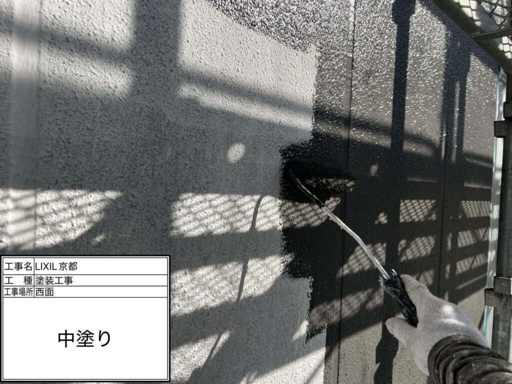 中塗り → 凸凹等のない平らでなめらかな下地を作り、中塗りを行うことで塗料の性能(防汚性、防水性、遮熱性)を発揮します
